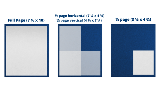 ½ page horizontal (7 ¼ x 4 ¾) and ½ page vertical (4 ¾ x 7 ¼)